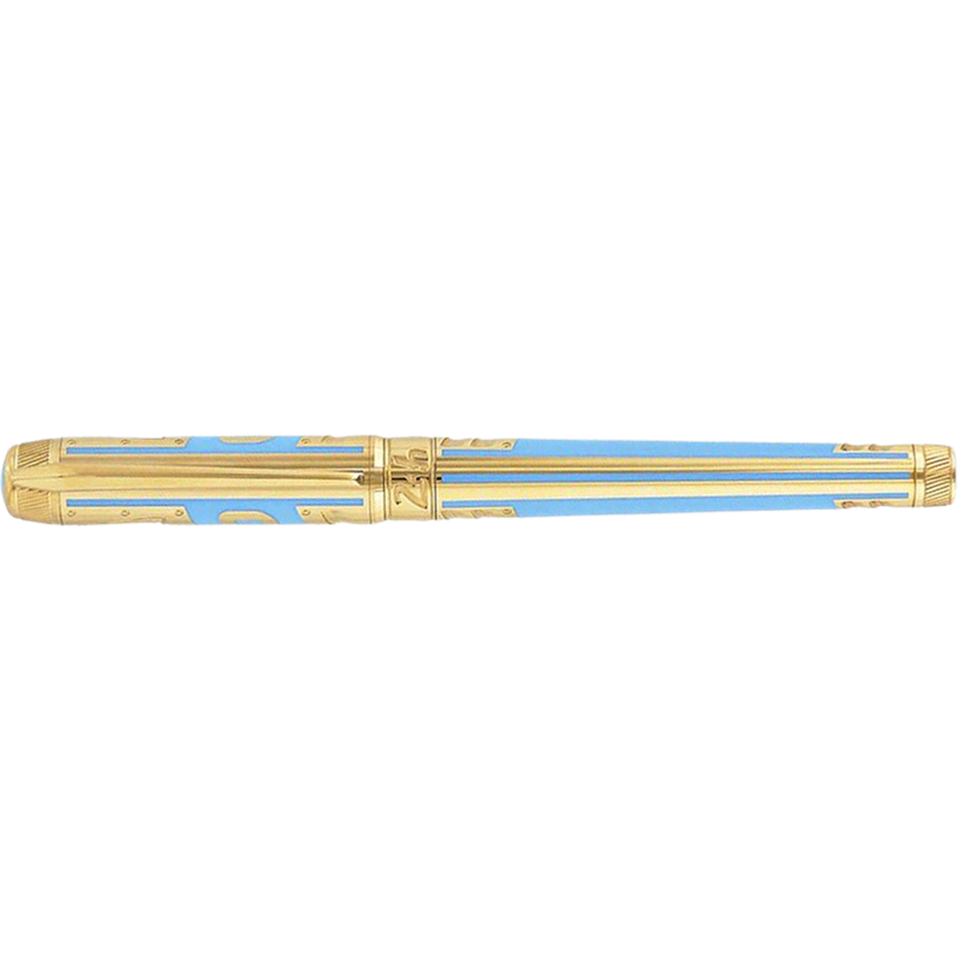 The XL Eternity luxury writing instrument highlights the iconic colors of the 24 hours of Le Mans race. The light blue color is symbolic of French racing cars in the 50's and 60's as well as the blue sky during the day of the race and is accented by a rich gold color symbolizing the yellow at nightfall and sunrise.